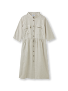 This linen dress captures relaxed elegance with a modern, feminine touch. Crafted from breathable linen, it feels light and airy—perfect for warm days. The button-down front and subtle stand collar create a clean, refined look, while the drawstring waist softly defines the silhouette. Finished with practical chest pockets and a flowing skirt, it’s an easy, versatile piece that moves effortlessly from day to evening
